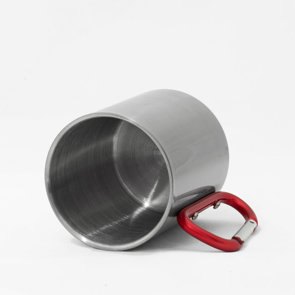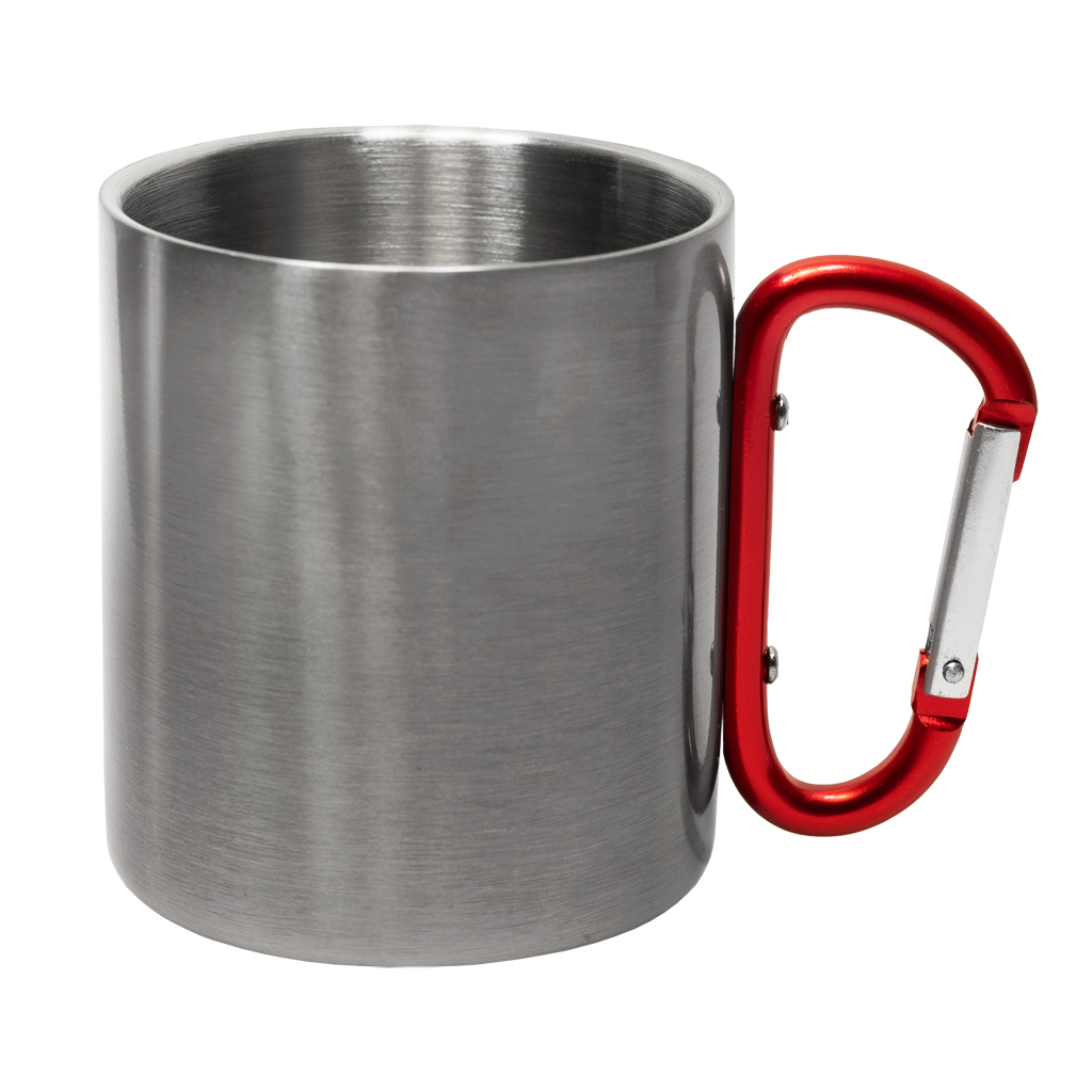 Nerezový hrnek s karabinou o objemu 300 ml.